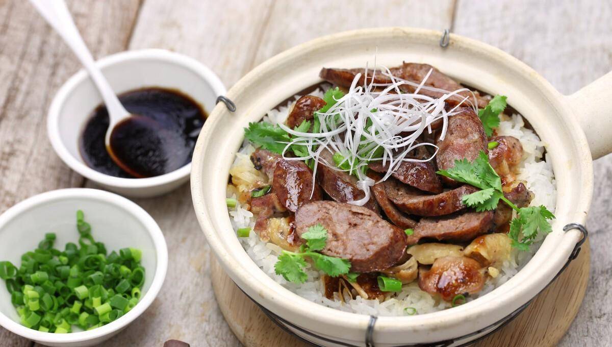 腊肠煲仔饭也是广东特色美食的一种,其中煲出来的饭有着浓浓的腊肠的香气,吃一口让人流连忘返。