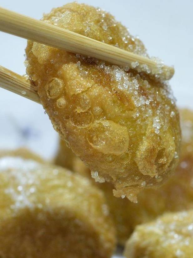 油糕在我们这里过生日、过寿要吃寿糕;婚宴吃喜糕。孩子高考、乔迁之喜、过年过节都要吃年糕团圆糕。在怀仁本地油糕,也叫油炸鬼,实际是油炸桧,是淳朴的怀仁人民,为了纪念抗金名将岳飞而制作的美食。人们只是将黍米面做成糕吃,后来出于对奸相秦桧陷害抗金英雄岳飞的愤恨,人们在糕里加了豆沙、菜馅、红糖用糕抱起来,将其看作秦桧的替身,让其下油锅,炸到色泽红润为止,然后将油炸桧全部消灭掉,以泄心头之恨。久而久之,这一习惯遗留下来,不再叫油炸桧直称油糕,并取其谐音“步步高”之意,成为当地人重要的节庆活动必备佳肴美味可口。