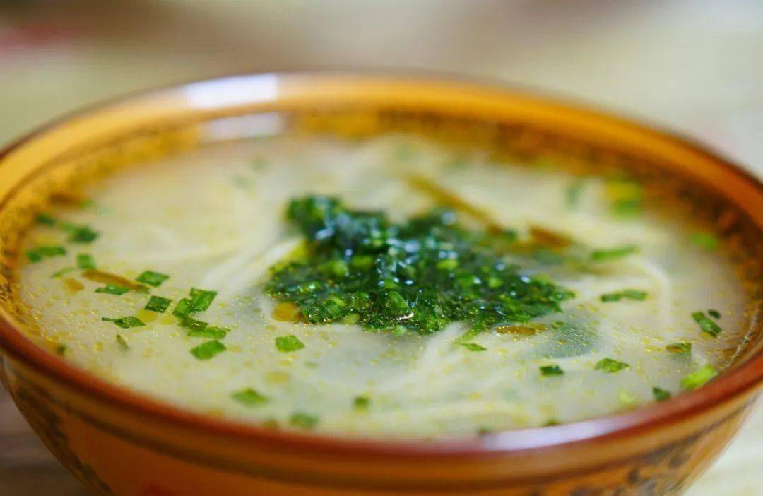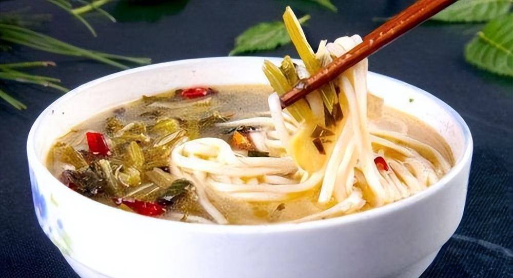 3.将面和好后,用手擀成并切成细长的面条,将面条煮开后盛入碗里,再舀上几勺调好的浆水、最后加入香菜,一碗可口的浆水面就大功告成了。