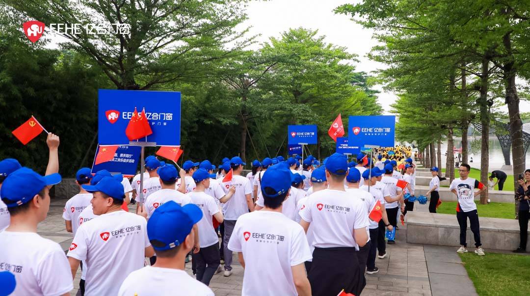 挥舞着“亿合门窗”的旗帜,身着统一的白色定制文化衫,亿合人凝心聚力,以饱满的精神状态惊艳亮相徒步起点,以实际行动展示“南海制造业”的精气神,群情激昂地喊出斗志的口号,等待着挑战的开启。