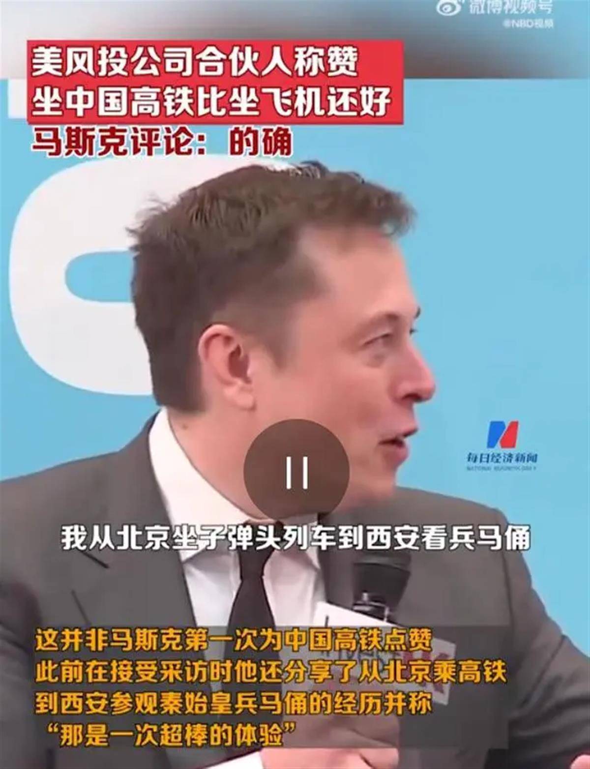 中国高铁的舒适,马斯克也是深有同感。今年4月23日,有网友在推特上发布一段视频,称赞中国高铁“比飞机还爽,它舒适、宽敞、超快,还准时。”随后,推特老板马斯克在视频下评论道,“是真的。”