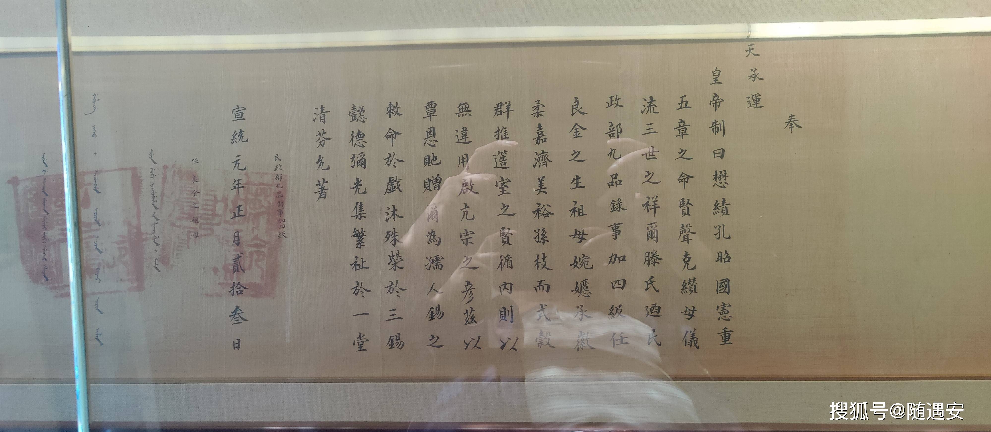 宣统元年正月二十三,封民政部九品录事加四级任良金的亲祖母滕氏为孺人的敕命。