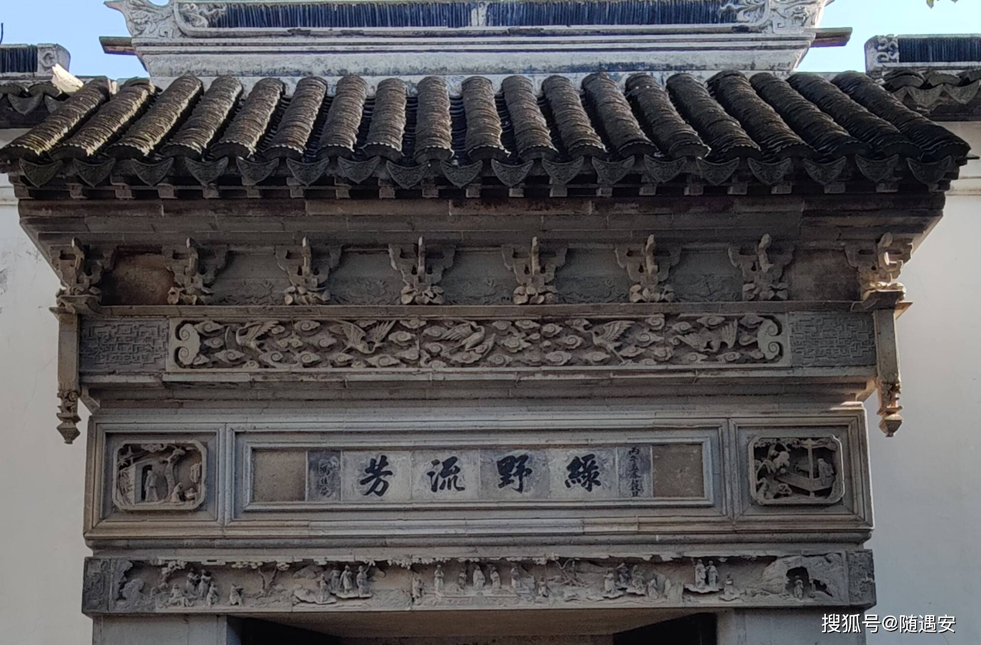 尚贤堂和明是楼前各有清代砖雕门楼一座,所雕人马戏文玲珑剔透,意趣隽永,虽依附于厅堂,却未尝不是一件独立的艺术品,极富艺术价值和审美情趣。