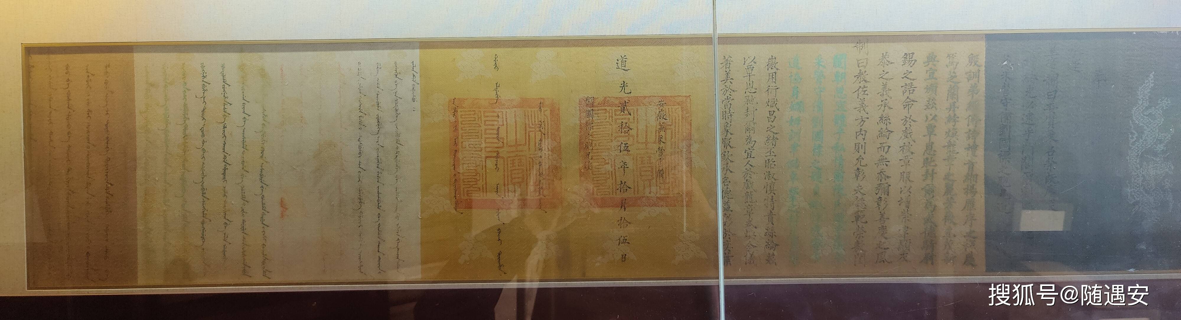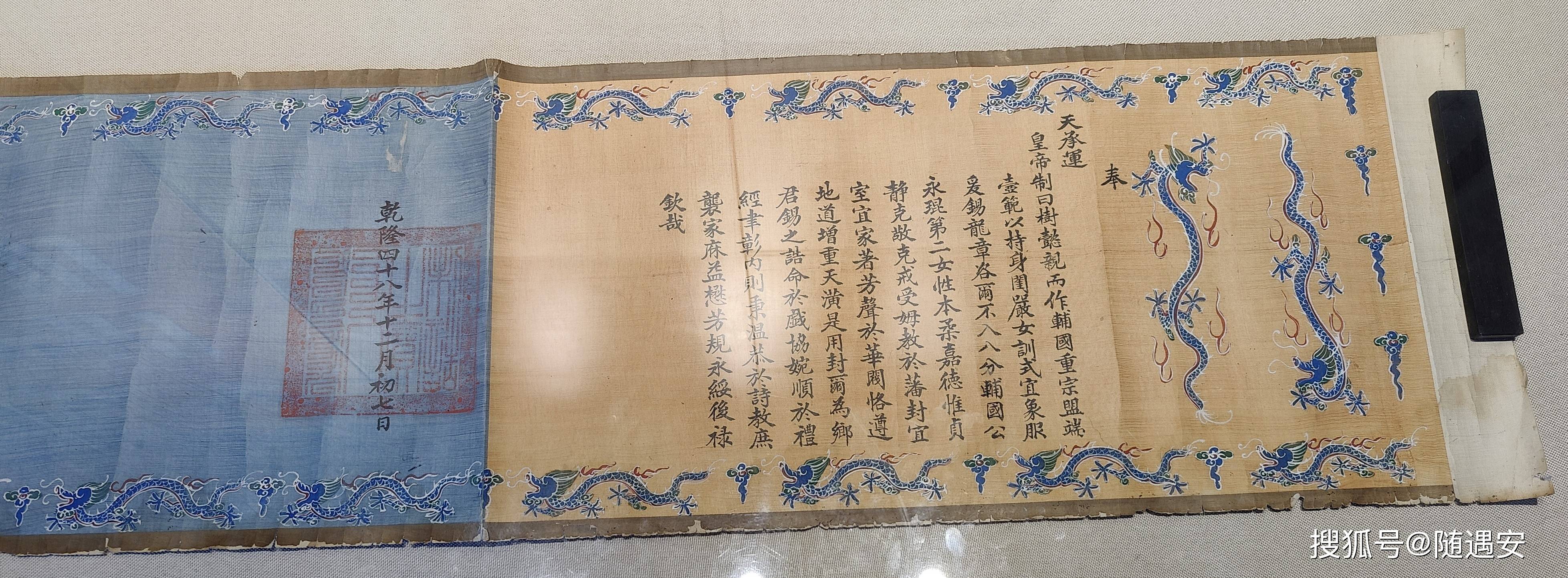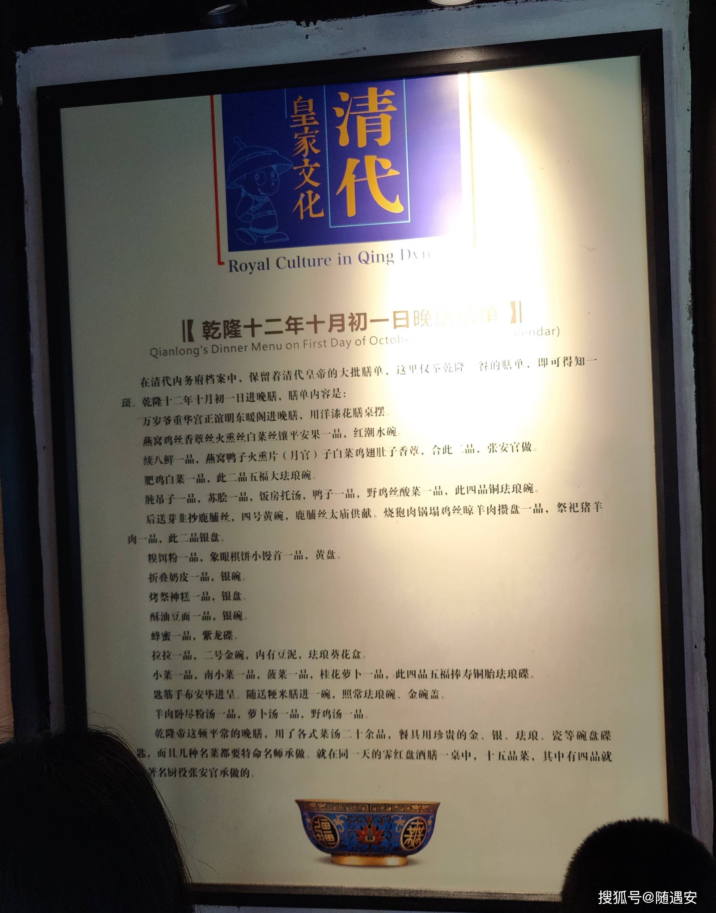 圣旨馆西侧是”清代江南御宴厅“,乾隆六下江南在此驻跸时,用餐之处。墙壁展示有乾隆在此用膳的菜单,餐菜上有菜肴的样品。