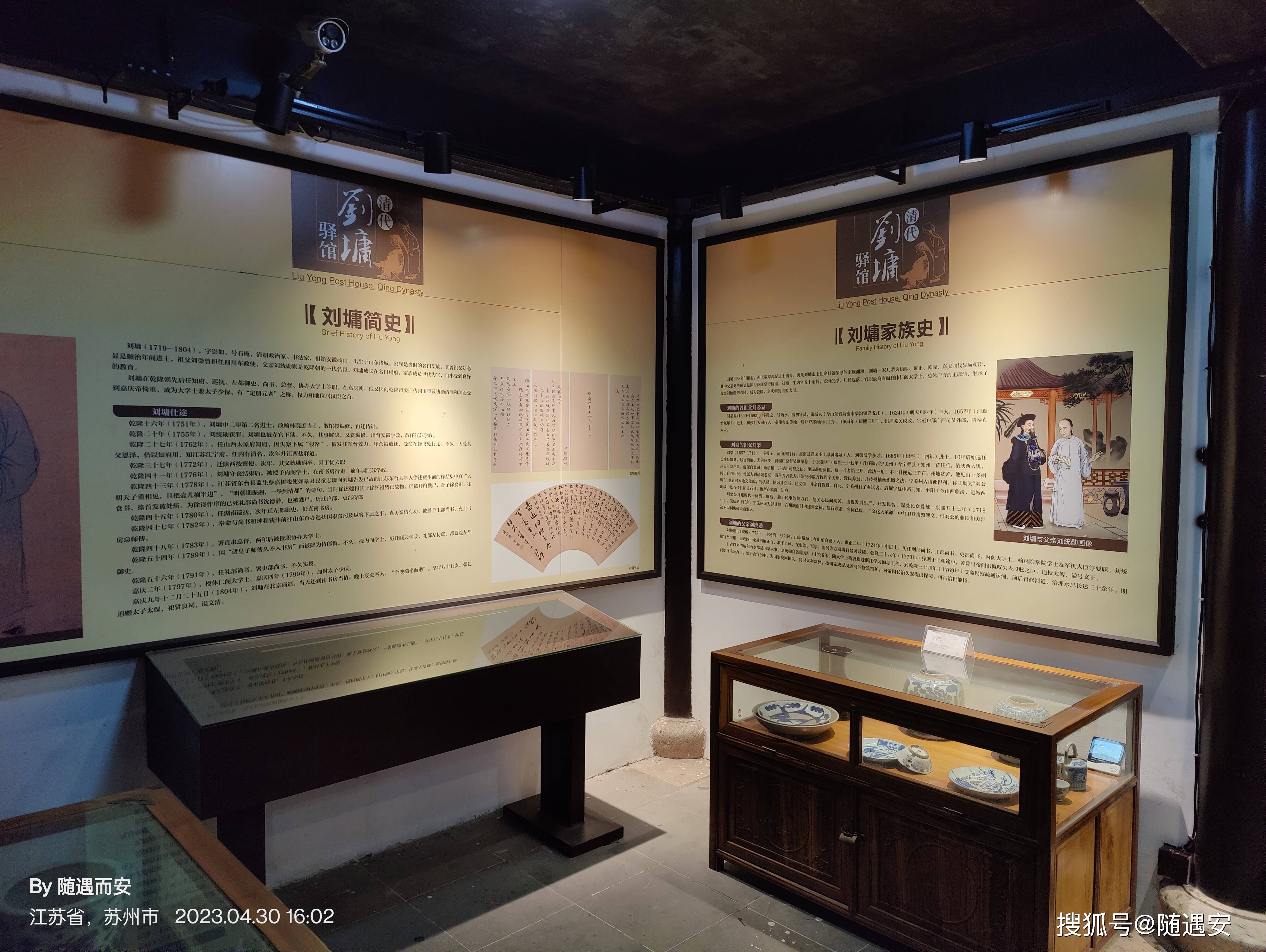 御宴厅的后面是刘墉驿馆。虹饮山房据传是乾隆的民间行宫,但乾隆真正是住在灵岩山行宫的。虹饮山房主要安排扈从词臣等入住,刘墉两次下榻虹饮山房,与落第秀才徐士元诗酒唱和。驿馆内介绍刘墉情况,以及刘墉的官袍与夫人的服装。真假如何便不得而知了。