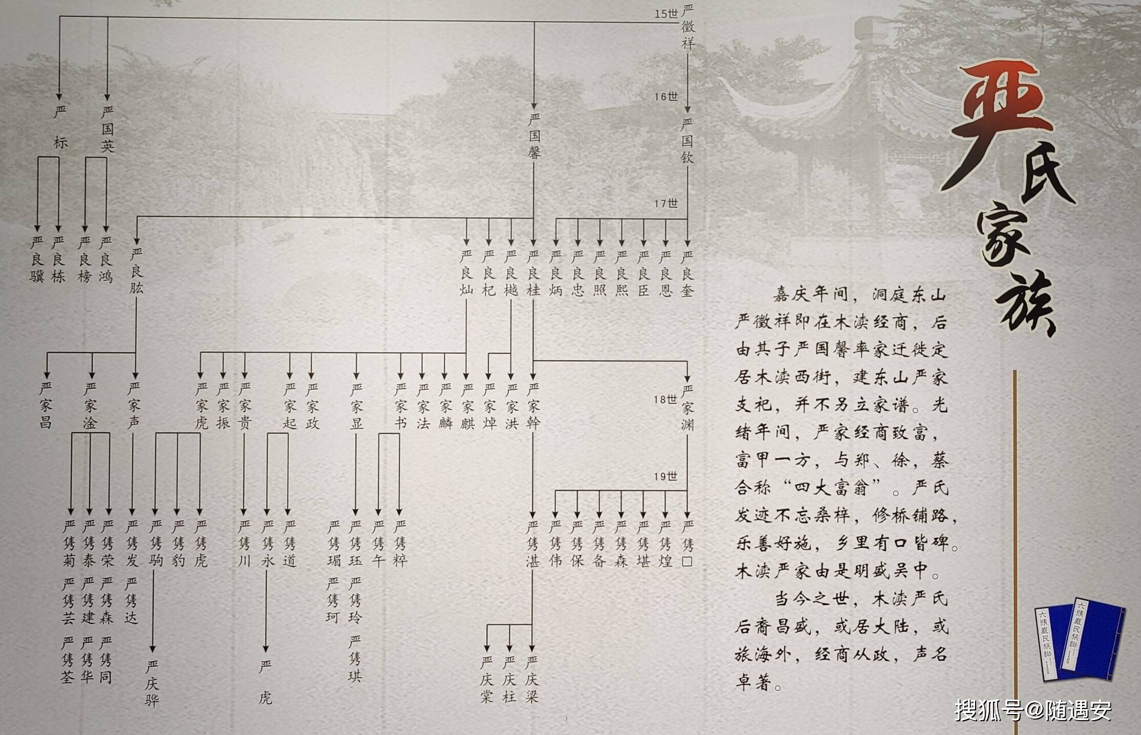 严家花园门对香溪,背倚灵岩,光绪二十八年,木渎首富严国馨买下园子,请了声名赫赫的姚承祖,斥巨资重新修葺,更名为“羡园”,当地人称“严家花园”。匾额的题字出自“帝师”翁同龢。严家花园占地16亩。中路为五进主体建筑,依次为门厅、怡宾厅、尚贤堂、明是楼和眺农楼。