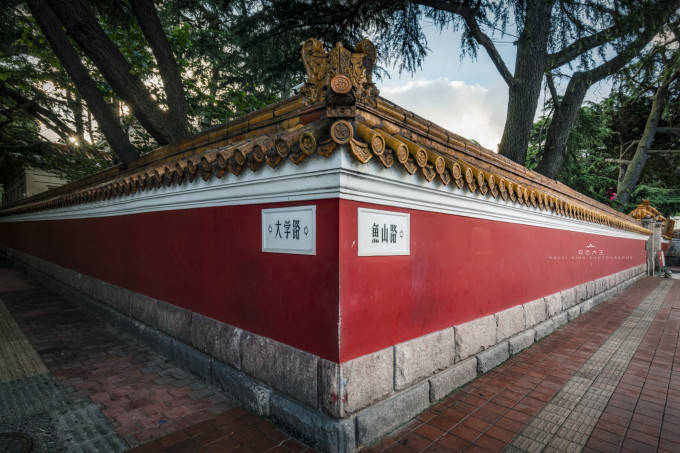 从酒店打车出来20分钟就能到网红墙,定位的话直接搜网红墙就可以,或者上车跟司机说,司机基本都知道这个地方。网红墙其实是 青岛 艺术博物馆的外墙,上面各镶嵌一个汉 白玉 路牌,一个标着大学路,一个标着鱼山路。