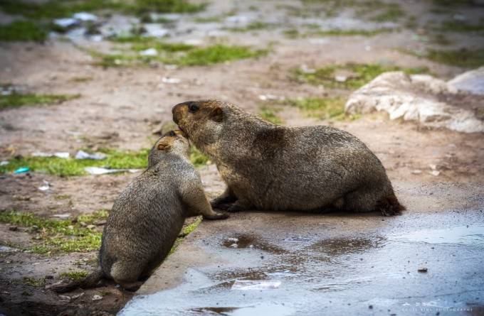 雨下的虽然不大但是风超级大,打伞也没有太大的用处。来这里的另一个目的,就是这群呆萌的土拨鼠,这边还是可以遇到土拨鼠几率非常大的地方,由于经常能得到游客们的喂食,这里经常会聚集大量的土拨鼠,但是能否碰到他们也是需要运气的。