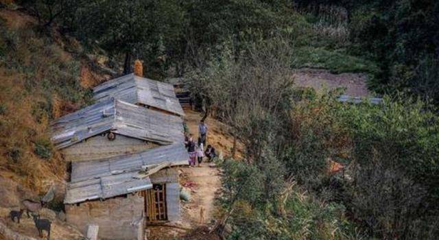 在深山之中,有这样一个破败的小房子,老旧的围墙只靠土和石头堆砌而成,就连屋顶也是用简陋的木板凑成。可想而知,家中并没有什么家具,所见之处都是土和木板。