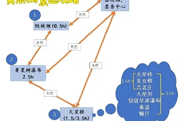 而这三个景点,景区在游览顺序的设计上也很讲究。如果你时间充裕,最好按照景区的这种顺序去游览,因为从陡坡塘-天星桥-大瀑布,就像一个乐章,慢慢走向高潮,当然如果时间不允许,或者就只是奔着大瀑布而来的,那么就可以不用考虑这个顺序了。