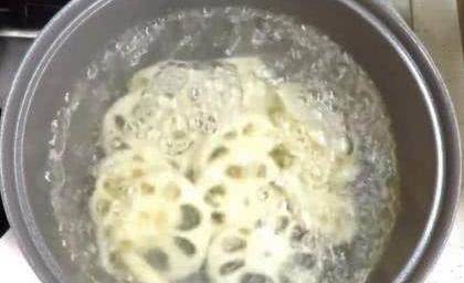 不过说到清炒,好多人的都会发现炒出来之后它总是黑色的,一变色就不好吃了。今天就跟大家分享几个清炒它且,不变色的诀窍。首先第一个就是用开水焯莲藕,在干净的锅中加入适量的水烧开,再将莲藕放进去焯、水差不多一分钟就可以捞出,这样是为了让它的氧、化酶失、去活性,从而抑制了多、芬像酶的转化,焯水之后再炒的话就不会变黑了。
