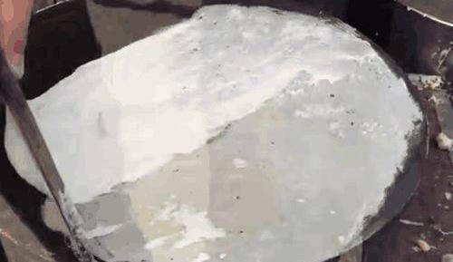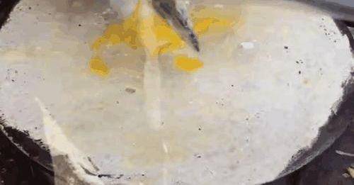 说出来之后,是不是也让很多的山东人感到很骄傲呢?只看到这个小哥在挂面糊的这个过程中,我们也都知道,跟平时我们见到的一些面糊是完全不一样的,它一点也不稀,可以说是很有粘稠度的,你说小哥在刮的时候,要是有一个拉扯的状态,不容易才能够将这个面糊刮得很均匀。说这个小哥也是有着多年的一个经验了,找到了自己的方法以后刮的这个方法也就很顺了。