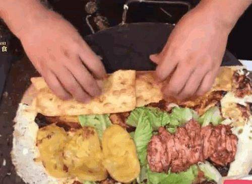 他把面糊给刮好之后,这个时候的鸡蛋也已经烤熟了在把一些特制的酱汁涂抹在这个饼上面,然后再铺上一些生菜,加入上土豆和一些鸡肉。其实这样的搭配也是很多的,我当时还看到了有辣条的身影,就是这样一个土豆和鸡肉的搭配,那也只是需要15块钱,如果是女孩子的情况下,我们两个人一份,也就能够吃饱了,也是很划算的。其食材全部都铺在饼上,之后还要进行稍微的烤制一下。再加上两块脆饼,放在面食的底下。那时候趁着饼也已经干了,就要把煎饼给卷了起来,旁边看的一些顾客也是都快要流出口水了。是当时小编我也是馋得很,想要赶紧买上一个。