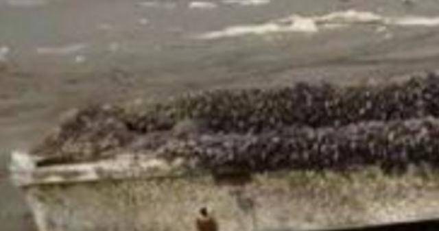 废弃的渔船里,人们经常会捡到一些稀奇的东西,于是男子就想去碰碰运气。谁知越走近船只,发现越是不对劲,船只的颜色这么深,几乎成黑色,偶尔还能看到其本来的底色。很是奇怪,而且好像上面有什么东西蠕动。到了跟前一看,密密麻麻的海洋生物,铺满了船只。男子认识这种生物,是象拔蚌,也叫皇帝蚌,大部分是野生的,而且在海鲜里的价值很高。