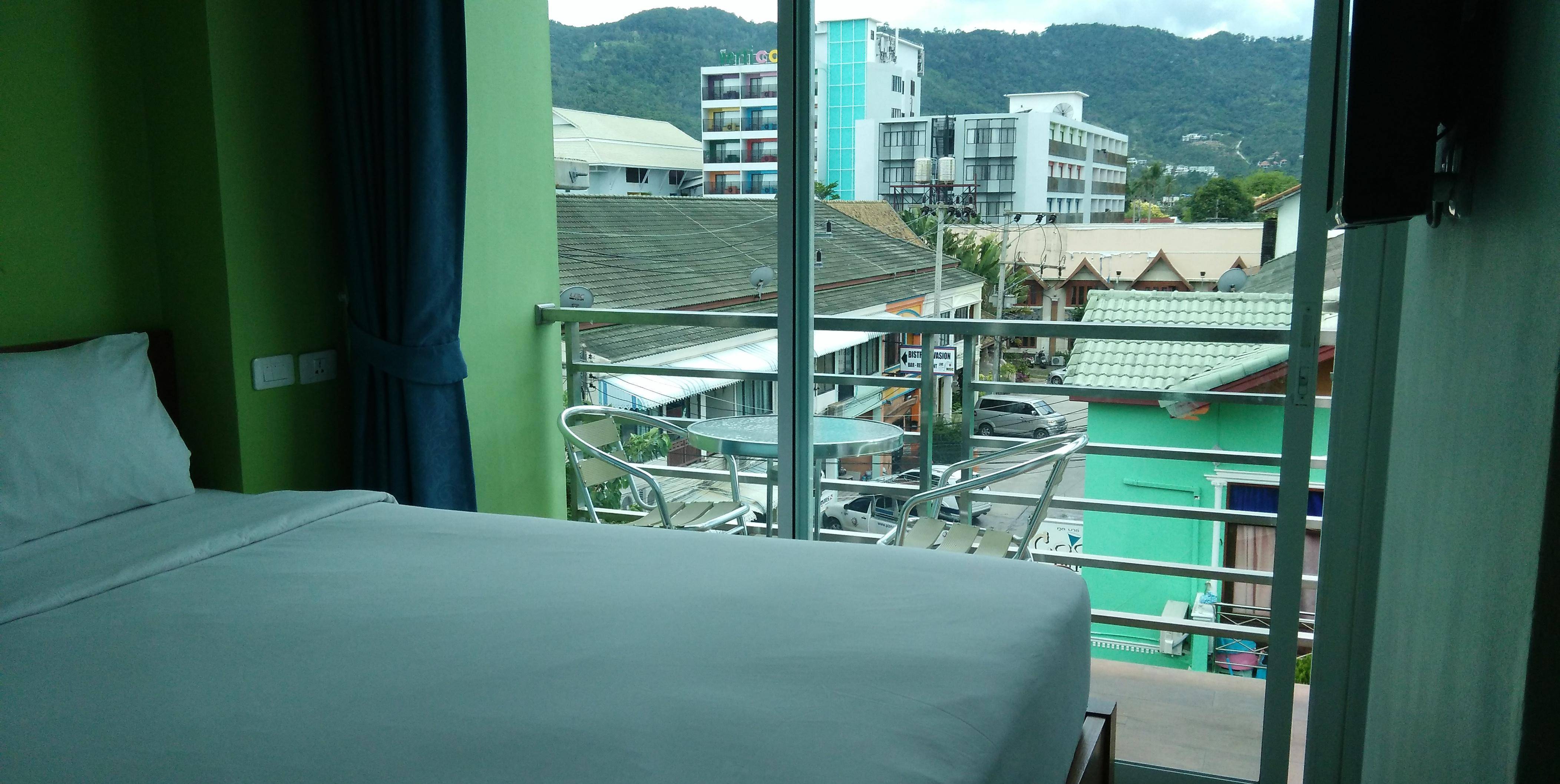 入住的大马路道内街的旅馆,除了干净卫生,闹中取静,还在楼顶设有露天咖啡酒吧,迎合住客喜欢休闲聊天,我特别喜欢小阳台,就是一个人喝点饮料看看马路风景也挺惬意的。