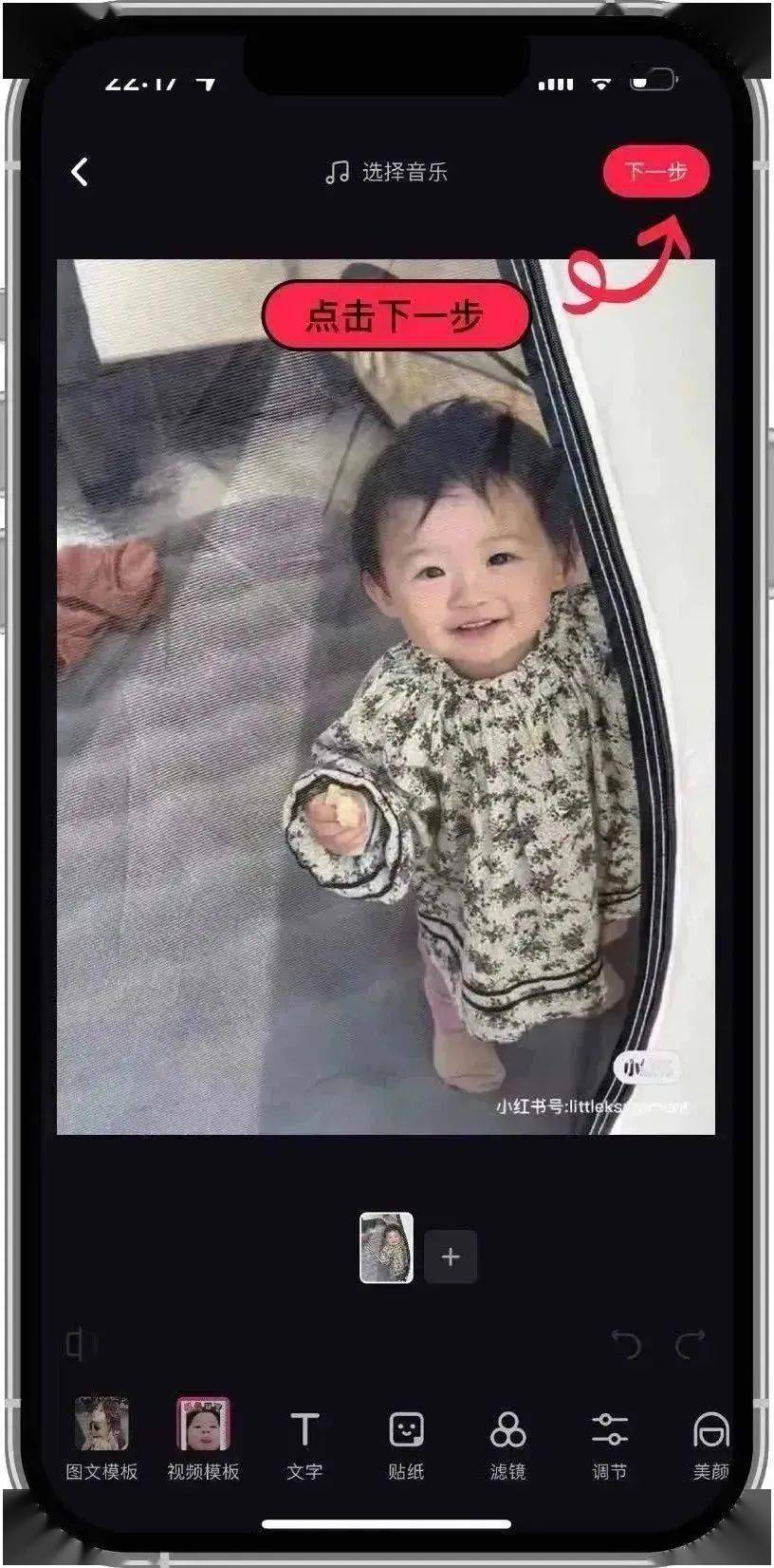 ▲4.从你的相册中挑选你想要发布的照片或视频;5.编辑图片或者视频;
