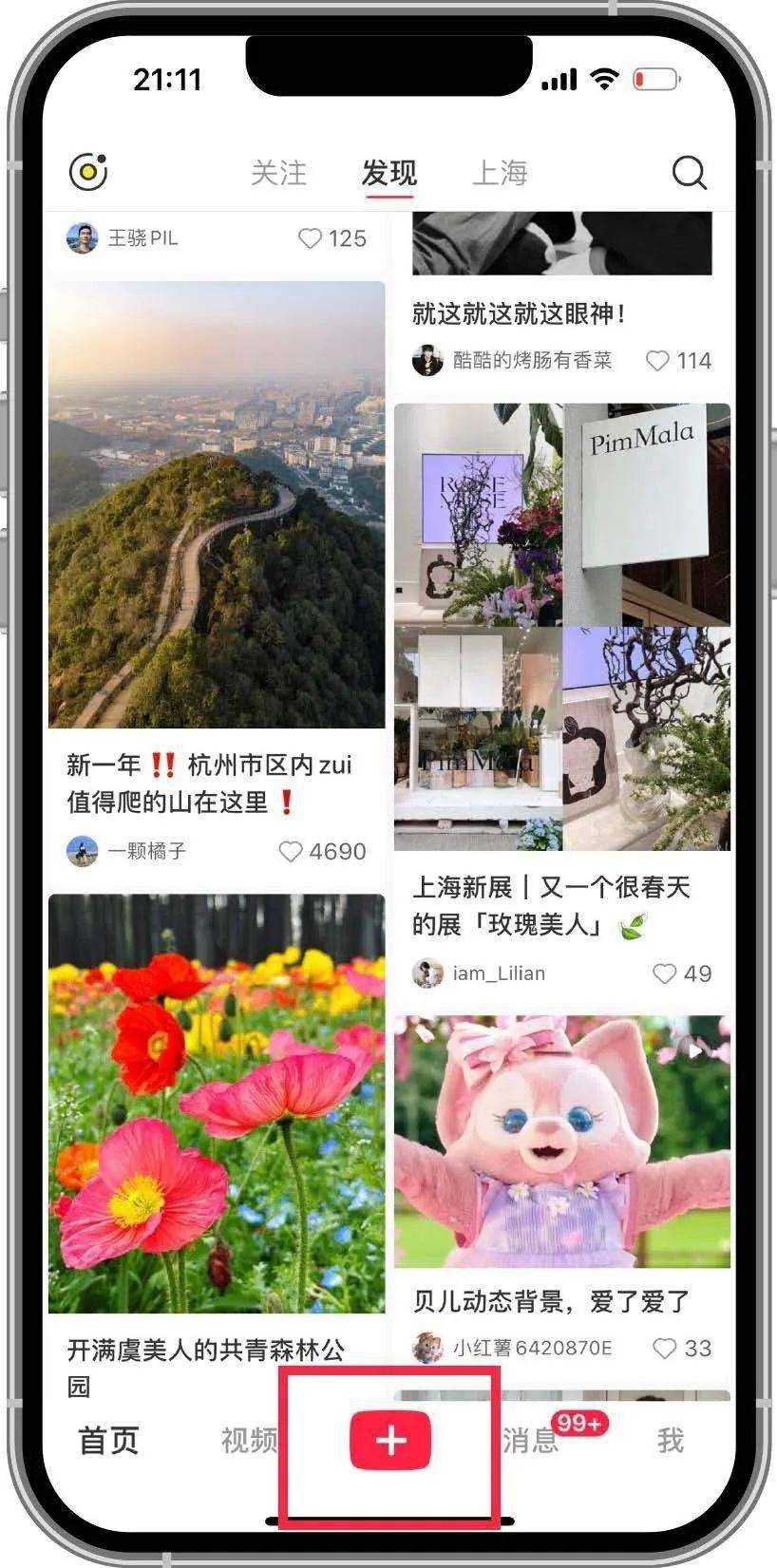 ▲1.下载小红书;2.直接点击下方红色“+”号,直接发布笔记;3.从你的相册中挑选你想要发布的照片或视频;