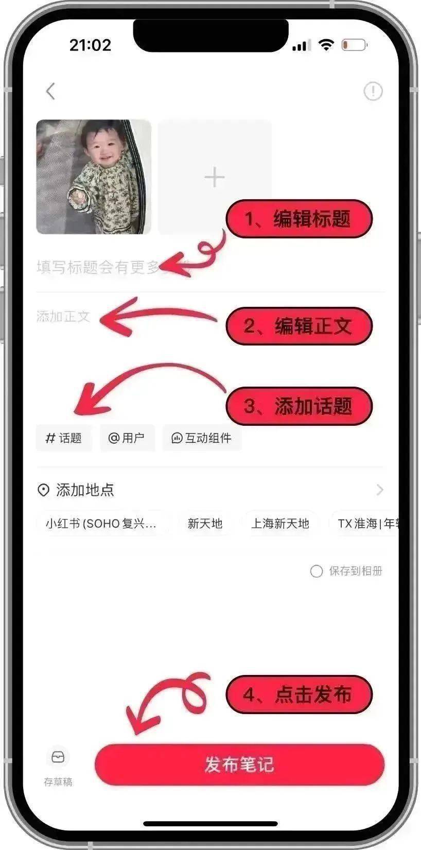 ▲4.编辑图片或者视频;5.编辑标题正文,带话题#小小露营家,点击发布,就成功参与活动啦。