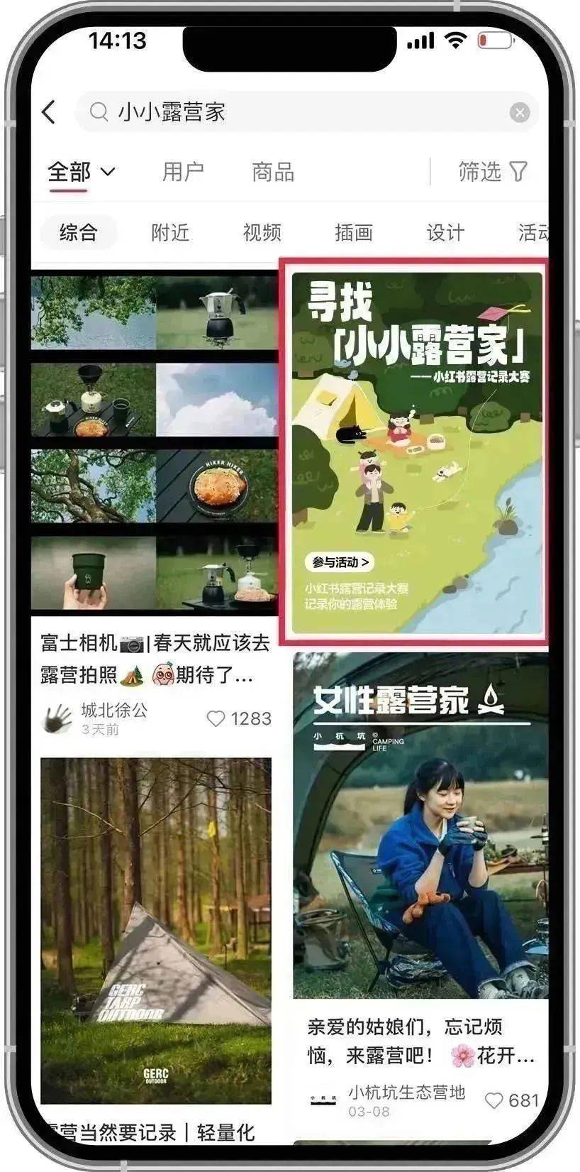 ▲1.下载小红书;2.在小红书搜索“小小露营家”点击红框内图片参与活动;3.在活动页面,点击发布按钮;