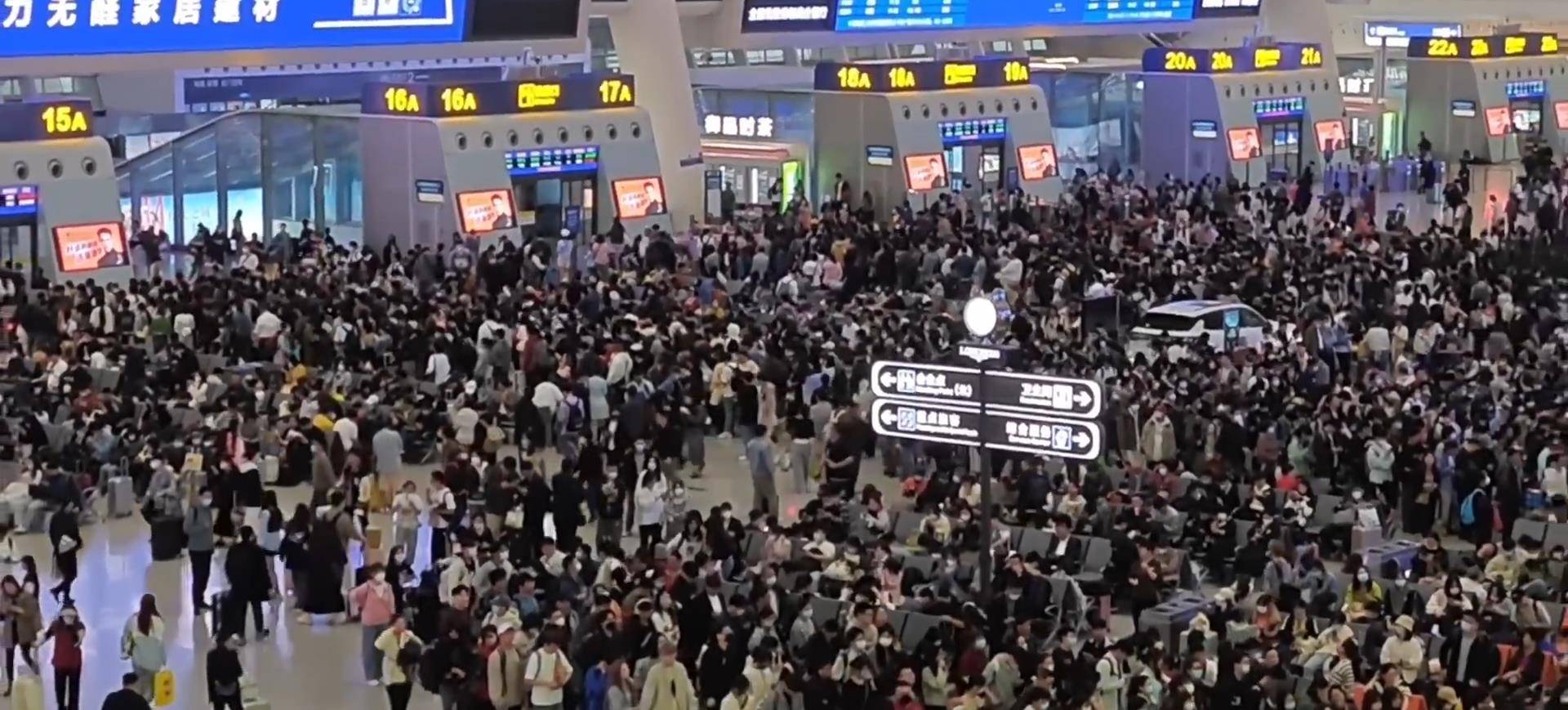 我来到了杭州东站的站前广场,坐满了人。但实际上,人流并不多,因为大部分人选择乘坐地铁或公交直接前往车站。进入大厅后,我看到了黑压压的人群。