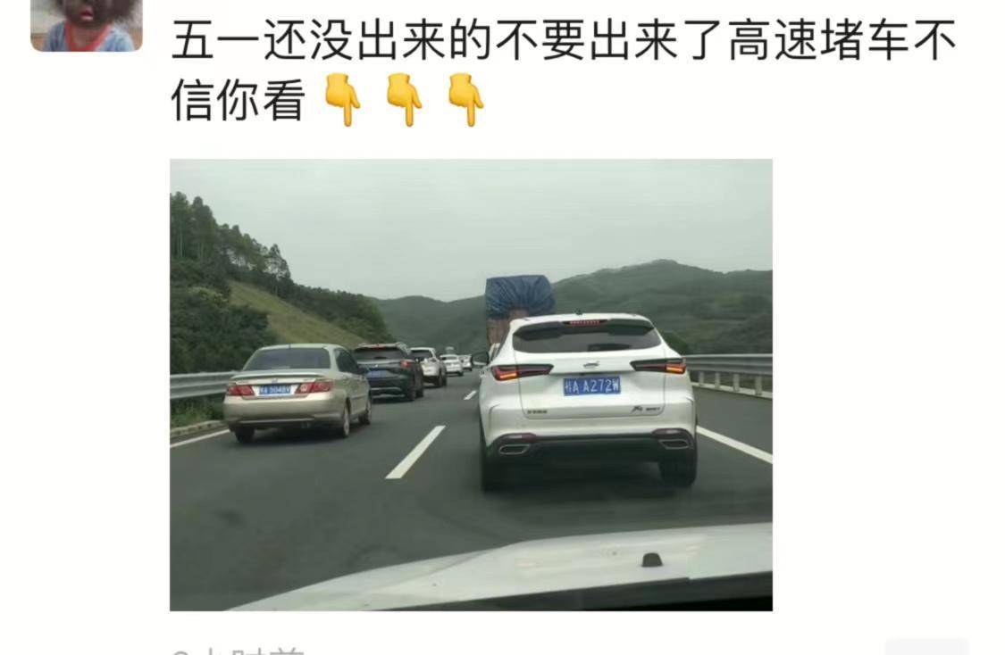 当然,也有很多朋友刚出门就堵在了高速路上,纷纷表示“五一还没出来的不要出来了”、“我后悔出来玩了,我想回家”等等。
