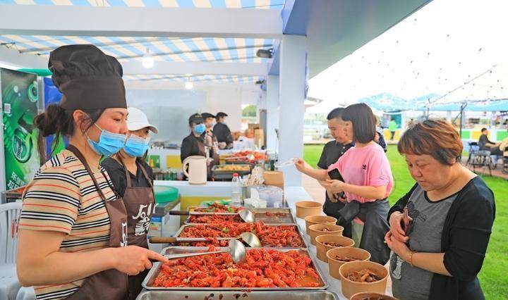 石淙花海景区,游客们赏花海、钓龙虾、品龙虾、玩电竞、搭帐篷,吃龙虾全靠“抢位”,日均6万人次打卡;