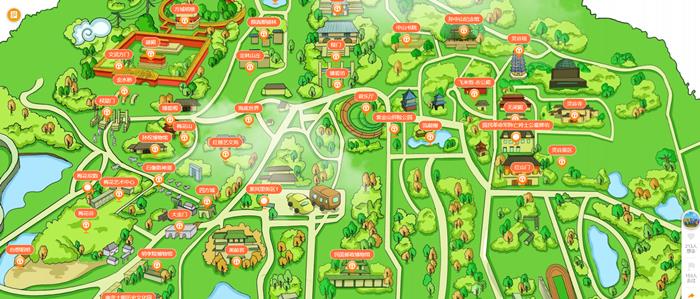 VR智慧景区基于VR全景技术,通过数字化综合云服务建设体系,整合景区周边商家信息,例如餐饮、住宿、商场、停车场等,嵌入综合搜索功能,方便游客快捷查找场景信息;或者通过景区手绘地图的形式,一键查找对应场景,大大方便了游客出行,这样的VR智慧景区很难让游客不爱啊!
