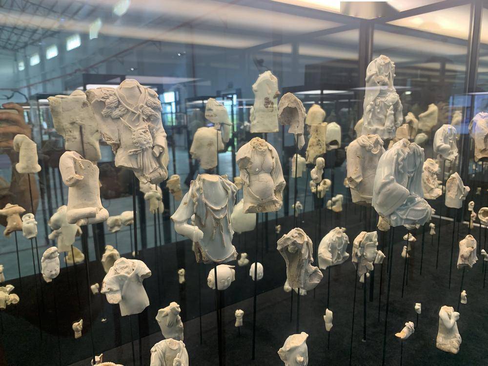 现场陈列展出的一件件陶器同样吸引了来宾们的注意,这一系列作品是源自中国千年瓷都景德镇自唐至民国时期瓷窑遗址出土的“窑渣”,千百年后,经过艺术家的审视而被重新赋予了独特的艺术内涵。在大批量烧制、事故中的变形、坍塌、被掩埋,以及在自然环境中生成的外观特征,让原本实用的定型器物在物理性上产生了千变万化的独一性,它们用另一种更“真实”的事件,传递着文明背后的故事。