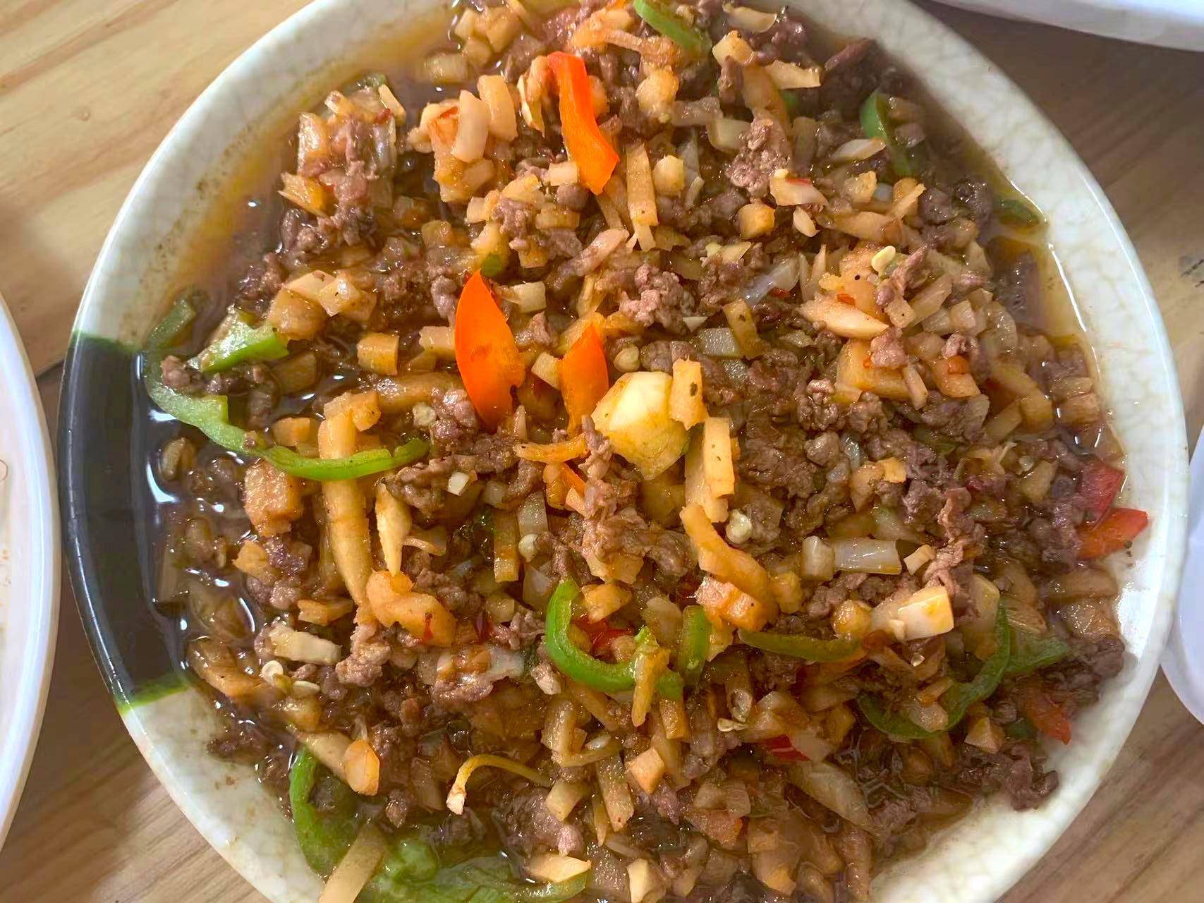 同样也是以酸辣为主,这个酸笋的味道就和螺蛳粉中的酸笋一样,比较的臭,吴军想着女朋友,经常网购螺蛳粉,那么这个酸笋炒牛肉,肯定也是比较喜欢吃的,虽然气味难闻了点,但是还是比较下饭的。