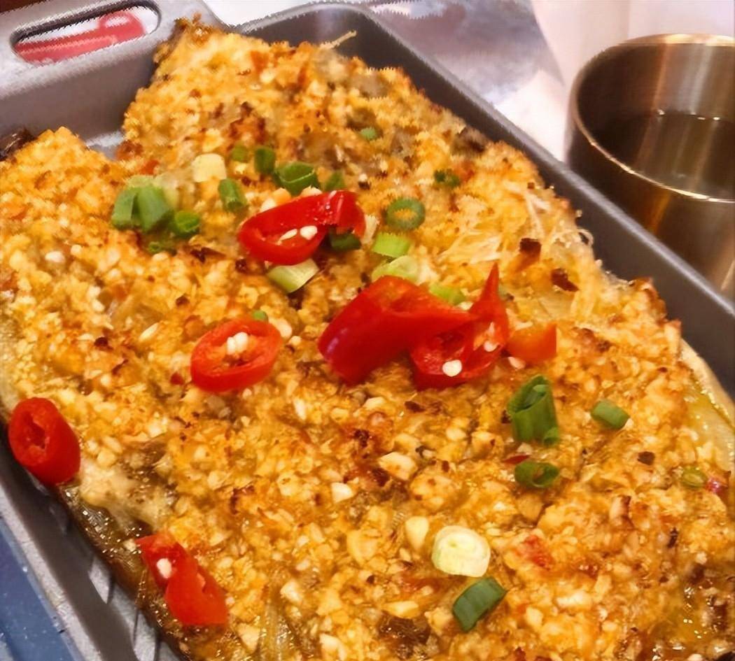 然后是茄子,有鲜椒茄子和蒜蓉茄子两种,一份19元,价格不便宜,他们点了一份蒜蓉茄子,本以为19元的茄子起码是一盘,结果就一个,个头还不大,但是蒜蓉加得特别多,蒜香味十足,还有微微的辣,不过这么小一个茄子,一个人就能吃光,六个人一人一口就没有了,真是小而可怜。