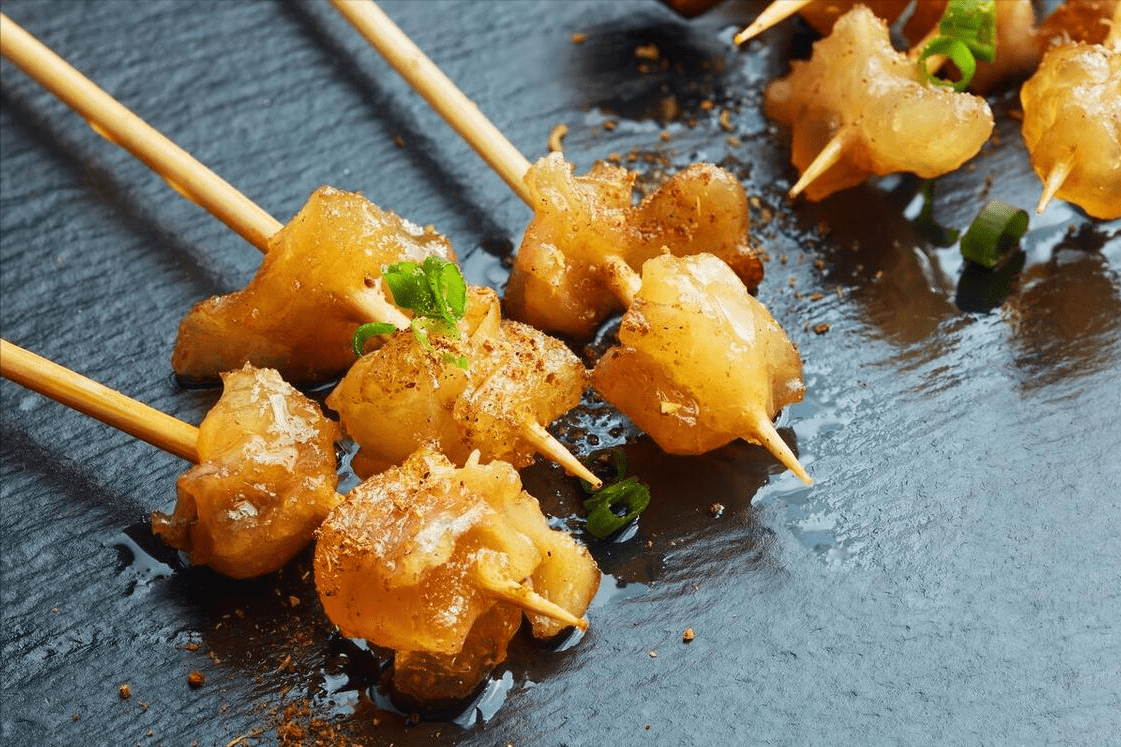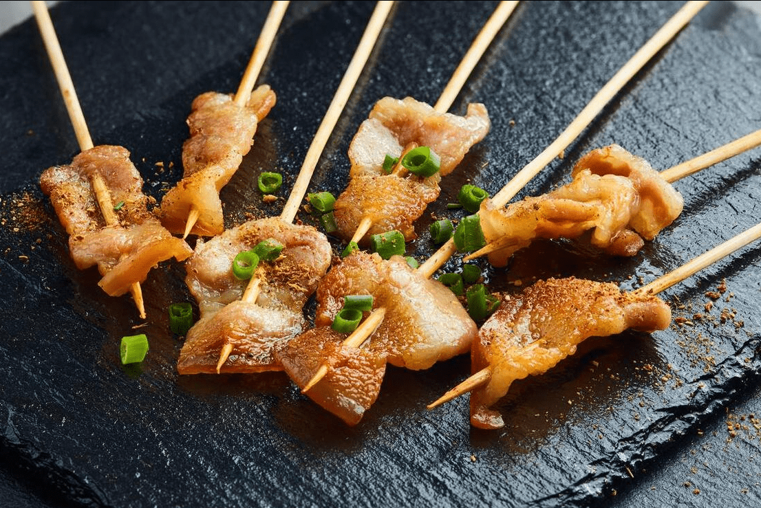 和山东的烧烤比起来,湖南烧烤有它自己的特色,孜然、辣椒面和盐,这个是湖南烧烤用的最多的,在长沙的夜市当中,吃烧烤得有好的牙口,什么黄喉、牛板筋、脆骨、牛油,掌中宝..,都嚼劲十足。