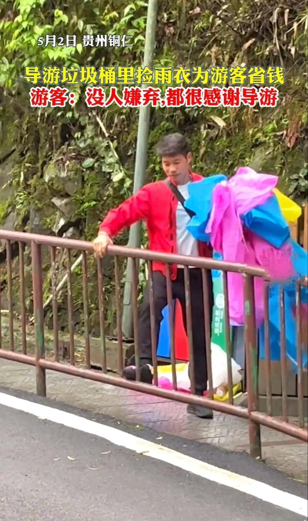 近日,贵州铜仁的一位女士跟着旅行团去玩,导游为了帮助游客省钱,从垃圾桶里捡了一些雨衣给游客,这一举动引起了广泛的关注。