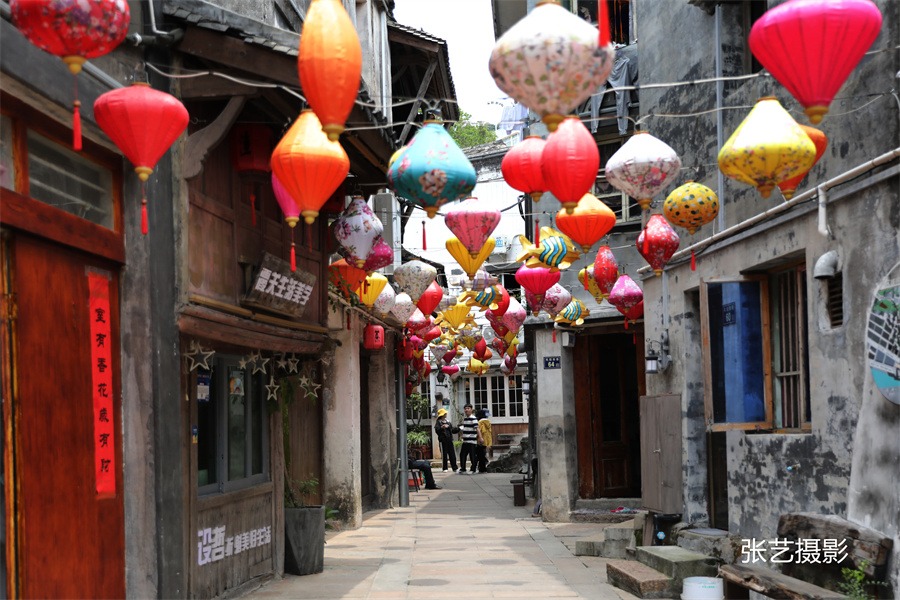 张灯结彩的街口,色彩缤纷的墙绘,老街注入现代风情。