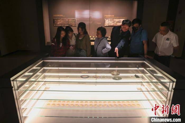 图为南昌汉代海昏侯国遗址博物馆内展出的金器吸引游客参观。 刘力鑫 摄