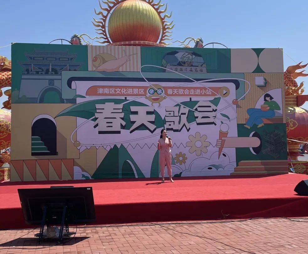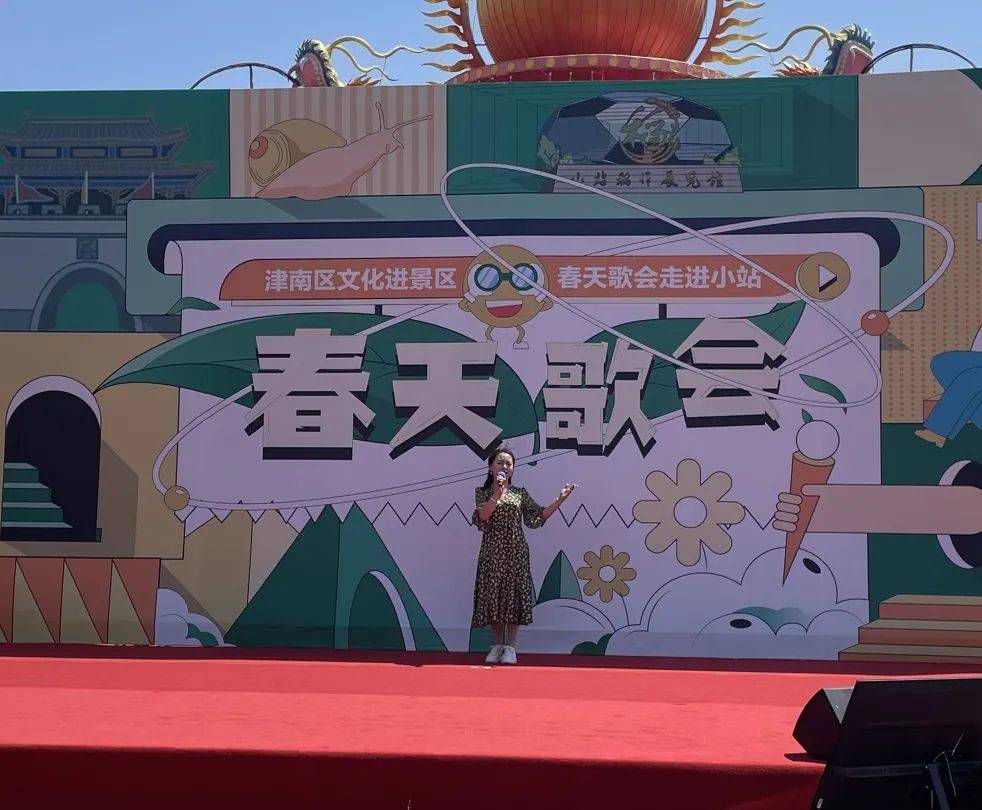 “五一”小长假首日,津南区春天歌会·走进小站活动精彩开展。来自津南区的文艺骨干、文旅志愿者带来了春天主题歌曲,为广大游客奉上了一场精彩的演出。活动中还进行了津南区旅游线路推介、“五一”旅游活动推介和小站美食推介,邀请广大游客“五一”小长假、欢乐游津南。此次活动以线上线下相结合的方式开展,直播间线上观看互动共计3.5万人次。