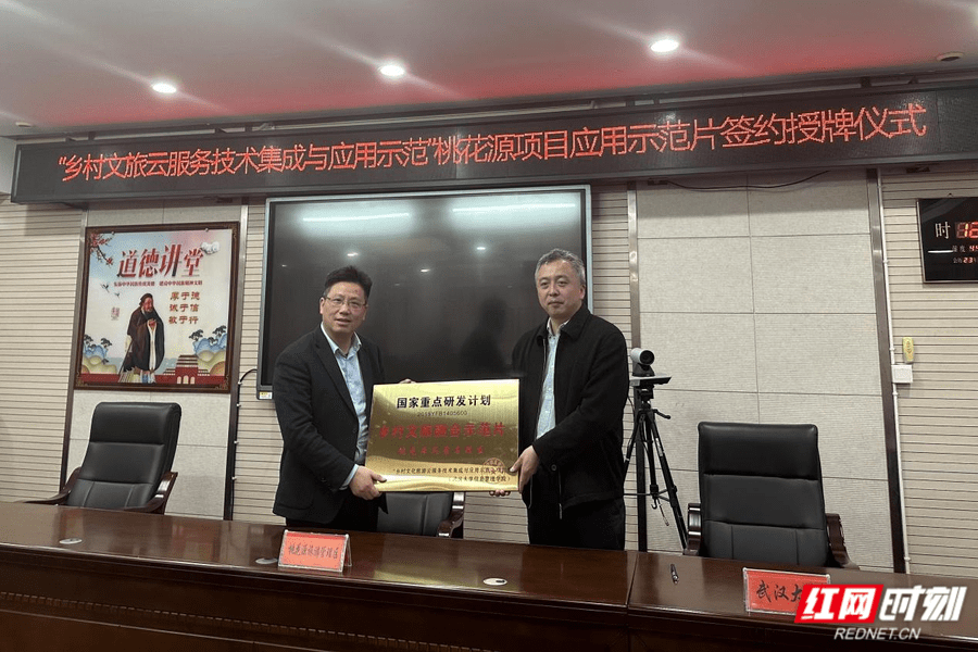 红网时刻新闻4月1日讯(记者 何超 通讯员 陈小慧)近日,国家重点研发计划“乡村文化旅游云服务技术集成与应用示范”项目组在常德桃花源旅游管理区召开座谈会,并举行桃花源项目应用示范片签约授牌仪式。