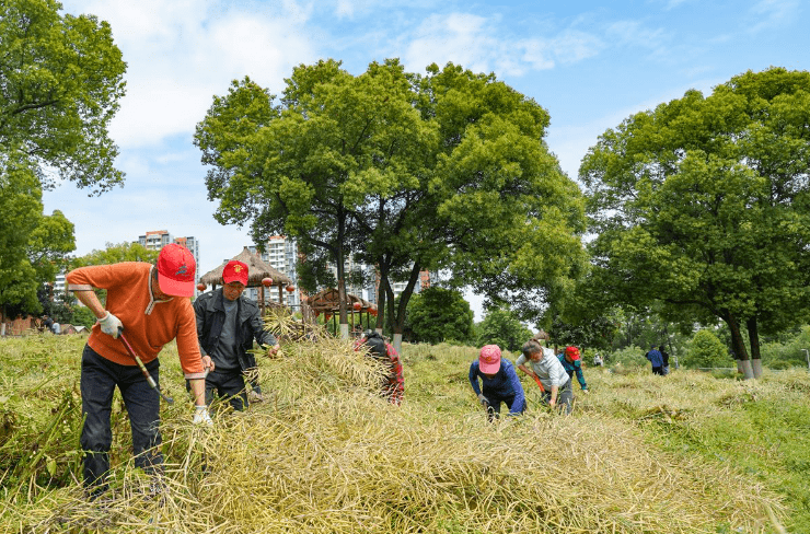 5月7日,城区运河公园景观长廊的慢漫园一派农忙景象。有人手握镰刀割着油菜,有人在一旁把割下来的油菜整理在一起。慢漫园是市民日常争相打卡的城市后花园,从百日草到油菜花,这里每一季都呈现不同的美。眼下,十多亩油菜已经成熟,运河公园管理处邀请了300余名市民前来体验“一日农夫”,一起享受丰收的快乐。