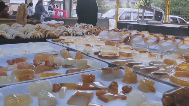 游客魏先生感叹说:“今天看了龙陵黄龙玉觉得颜色、质地都挺不错的,想买一个回去当作纪念品。”