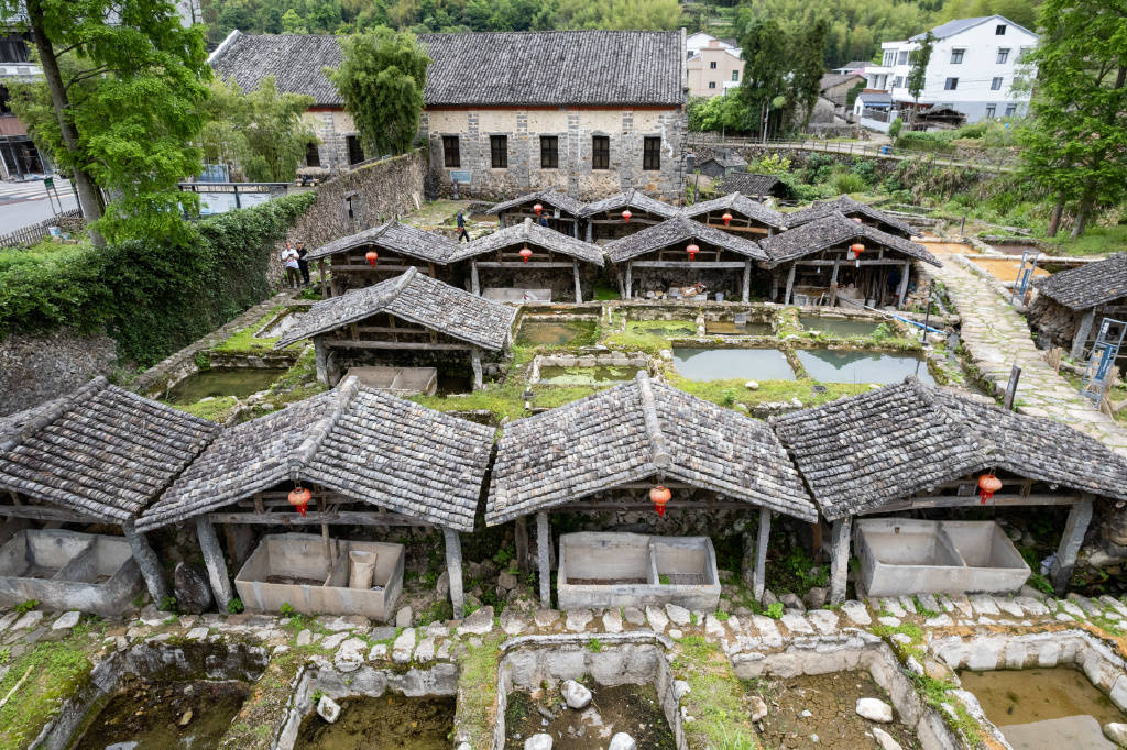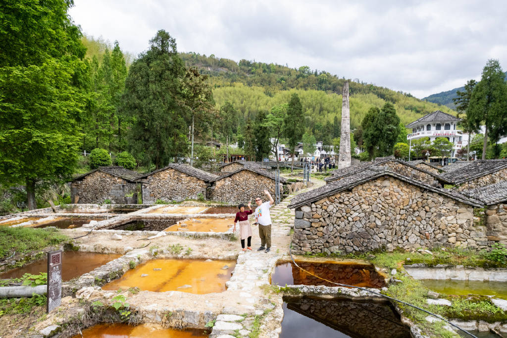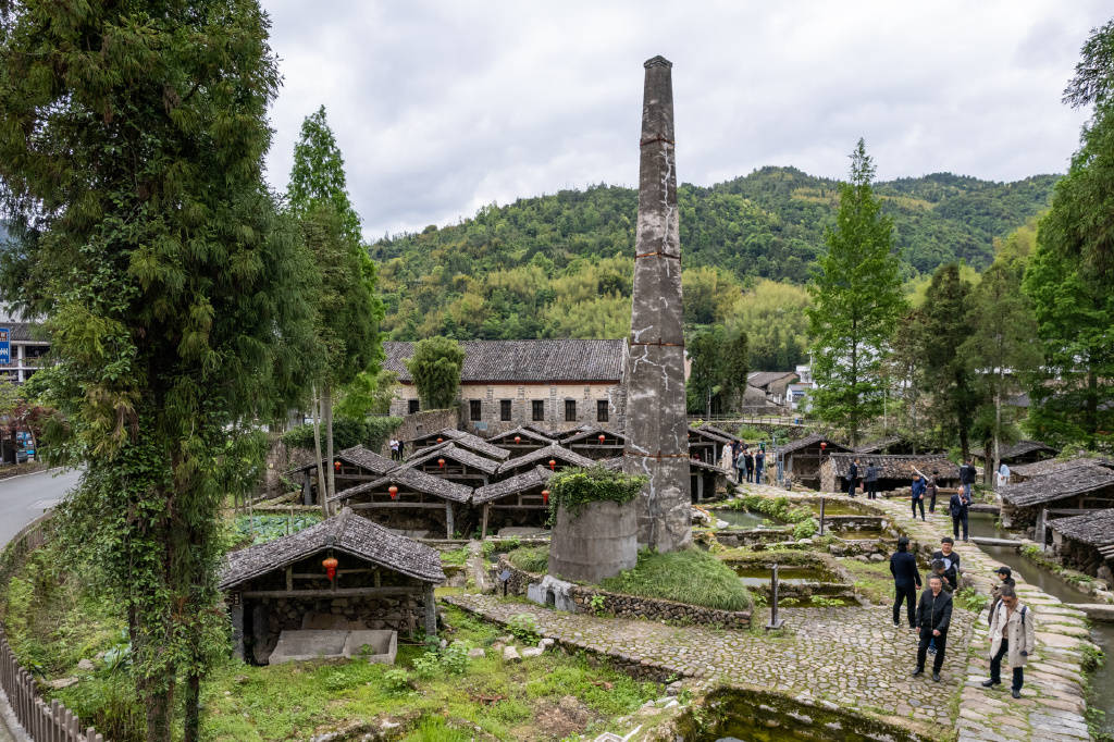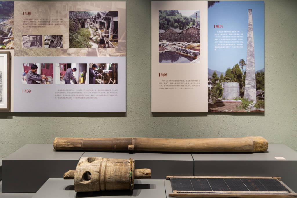 传统造纸专题展示馆的隔壁,还建有露天敞开式的造纸展示体验区。犹如调色盘般的水池,是腌塘;“大烟囱”,是蒸煮竹料的爊烘;像风车一样的是水碓,可以利用自然水动力。在这里,你可以近距离观察纸农造纸的过程,也可以亲身体验从斫竹、做料到捣刷、晒纸、捆纸等17道工序的手工造纸全过程。能够近距离亲身体验泽雅传统造纸和古老的纸山文化,真的十分有趣。