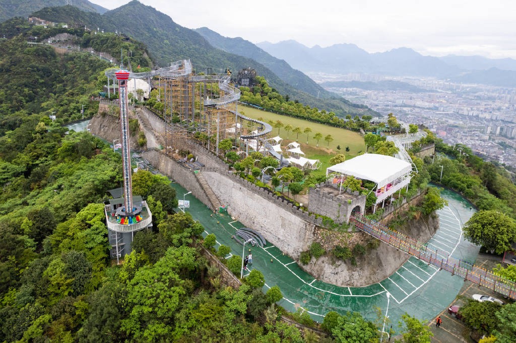 这是一个网红旅游景区,就位于瓯海区岭头山顶。景区将优美的自然风光和观光游乐、康养休闲相融合。既可以体验登高望远、农业采摘、休闲度假等,也可以体验旋转塔、高空玻璃桥、玻璃漂流等紧张刺激的游玩项目。推荐几个招牌游玩项目,一定不要错过。玻璃漂流,可以一边欣赏山下的城市美景一边可以体验速度与激情。凌空飞跃,也叫“空中飞人”,御风而下,瞬间跨越160米的距离。旋转塔,在山顶体验极速升降与坠落,尤为刺激。还有丛林穿越、9D影院、玻璃速滑、步步惊心、呐喊喷泉等项目,也都值得打卡。