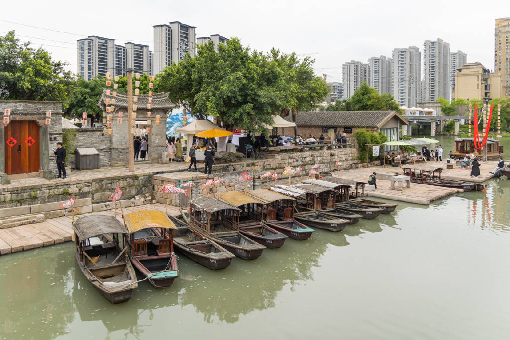 此外,在这里举办的青灯市集,一溜摆开的摊位、熙熙攘攘的人群,人气爆棚。今年举办的春季青灯市集全国美学大会,是青灯市集举办以来规模最大的一次。来自全国各地的传统手作匠人、独立设计师、生态美食家、古美术收藏家等,齐聚一堂。现场还开展了100多场大大小小的各式主题活动。结合了艺术展览、古玩市集、水上灯会、手工美食、精致露营、现场表演和互动等。与此同时,市集现场依旧散发着浓浓的温州浙南风格生活气息。