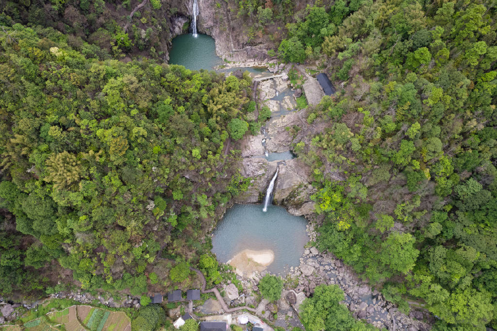七瀑涧景区,位于瓯海区泽雅镇。拥有深箩漈、青蛙瀑、天窗飞瀑等七折不同气势的瀑布,非常独特。进入景区后,步行不到10分钟,就能欣赏到第一折瀑布:深箩漈。在温州地区,“漈”就是瀑布的意思。再往山上走,就是第二折瀑布:青蛙瀑。它是七折瀑布中第二大的瀑布,但是落差却是最小。而且瀑布口的石头远看像一只大青蛙,所以叫青蛙瀑。依次登山而上,可以欣赏到七折瀑布全貌。