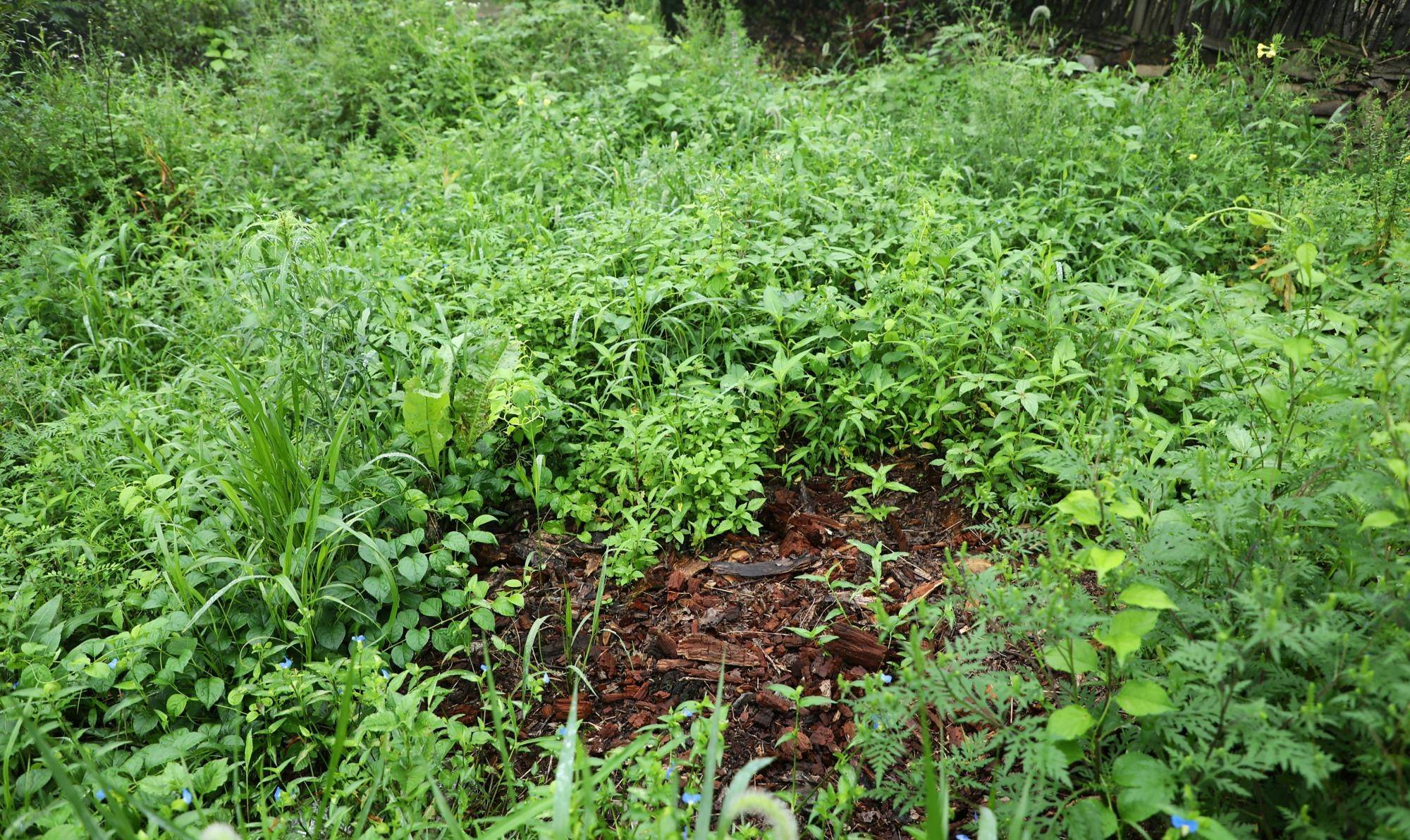 老树不在,遗迹尚存,当属“幸运”。带来幸运的,是远端这位红黑装大嫂。“可能不止250岁,省林业厅给挂的牌,两三年前枯死后伐倒,剩下树根了。”下雨天无事可做,大嫂准备去两三里外的大堡子人家打麻将,就顺路热心指引遗迹且道出原委。