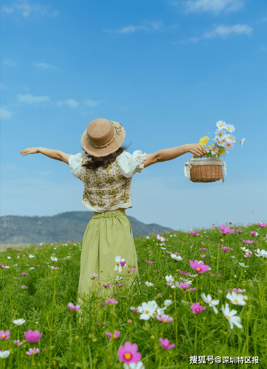 市民在格桑花海留影。图源:光明欢乐田园