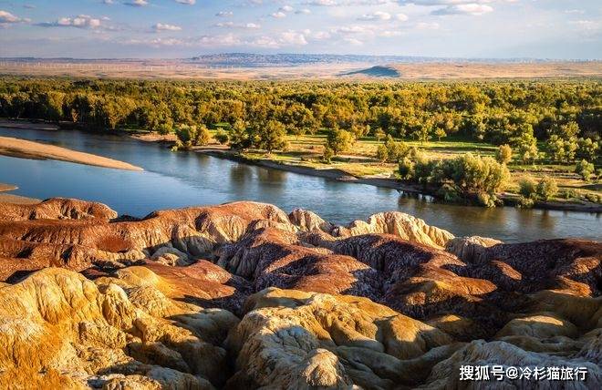五彩滩,是一个以雅丹地貌著称的河滩。这里的丘陵地质奇特,显示出多种色彩,每到傍晚夕阳照耀时,颜色绚烂,十分壮观。