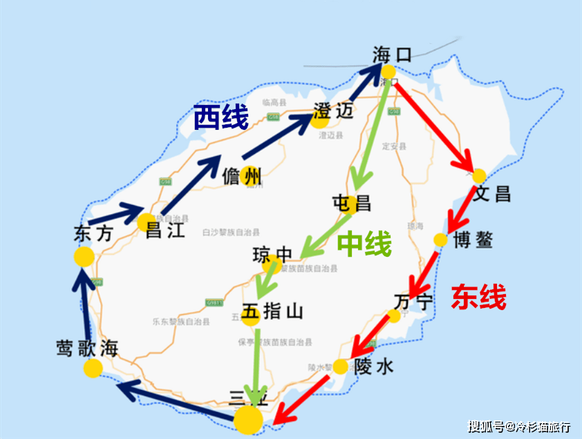 海南自驾最热门的线路有海南东线、海南中线和海南西线,如果时间有限,那我推荐你直接选择海南东线就可以了。