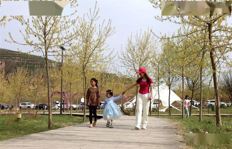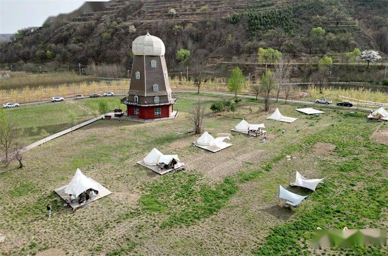 步入温泉镇八里庙村的太一农庄景区,层层叠叠的花田与周围的山峁、林地互相映衬,形成一道靓丽的风景。太一农庄景区依托张铁沟和周边山地,以黄土大塬自然风貌为特色,开发建设了观赏花田、窑洞民宿、林下烧烤等旅游项目。每年“五一”前后,这里的6万多棵丽桃、樱花、紫薇等竞相开放,美不胜收。