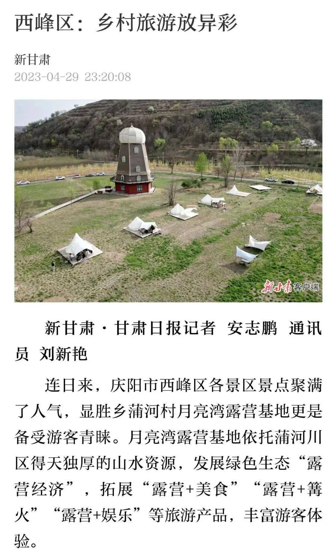 4月29日, “新甘肃”客户端发布 《 西峰区:乡村旅游放异彩 》。
