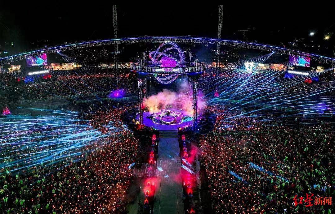 “五一”期间,成都三场大型音乐现场单日票价均在数百元左右,VIP票价可超千元,华晨宇演唱会门票几乎开售就秒空,供不应求。现场,数万乐迷集体大合唱、露天蹦迪,还出现了买不到票的观众从附近高楼上远距离参与的“围观票”。