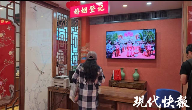 这几年,年轻人越来越重视婚姻登记的仪式感,建邺区民政局婚姻登记处不仅设置有中式、西式颁证厅,还免费提供礼服和化妆室。浪漫的氛围、贴心的服务,也让它成为口口相传的“网红打卡地”,吸引着众多新人前来进行婚姻登记。